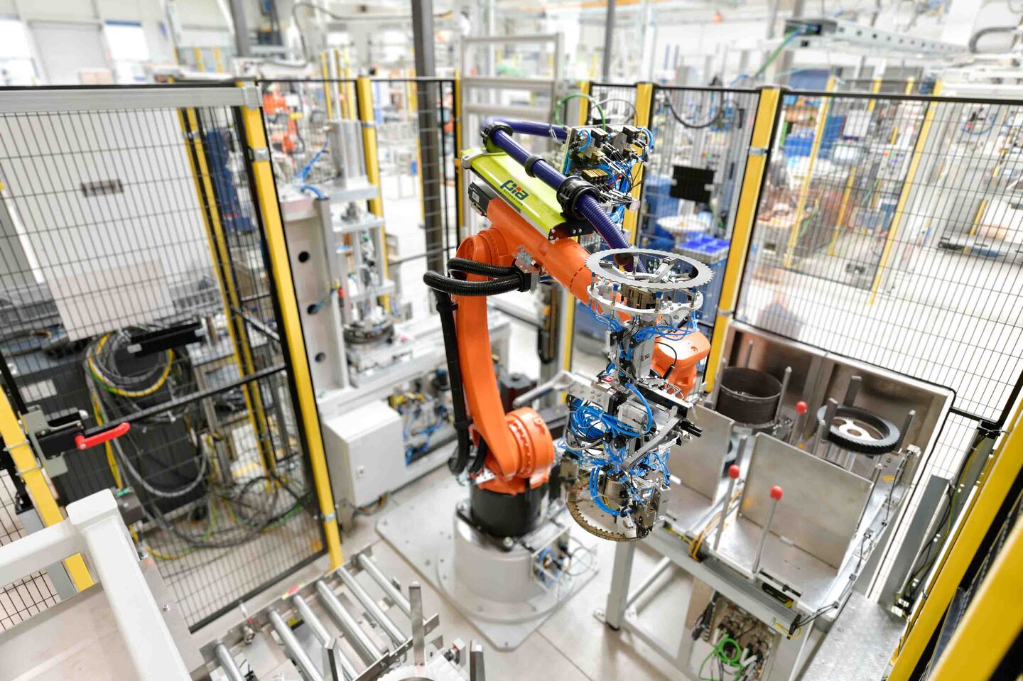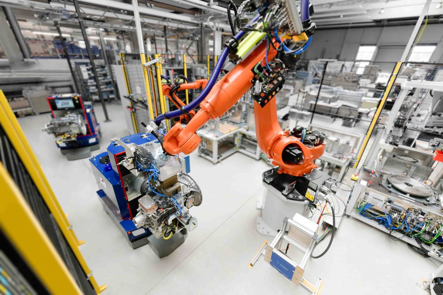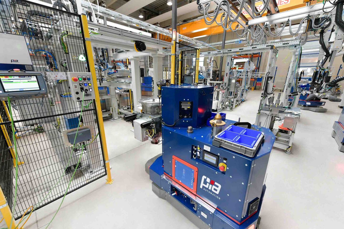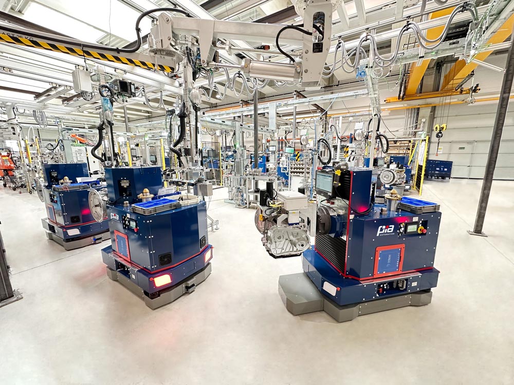 整条产线的装配流程,由定制化自主移动机器人完成。这些机器人满足人机设备最高安全标准要求。